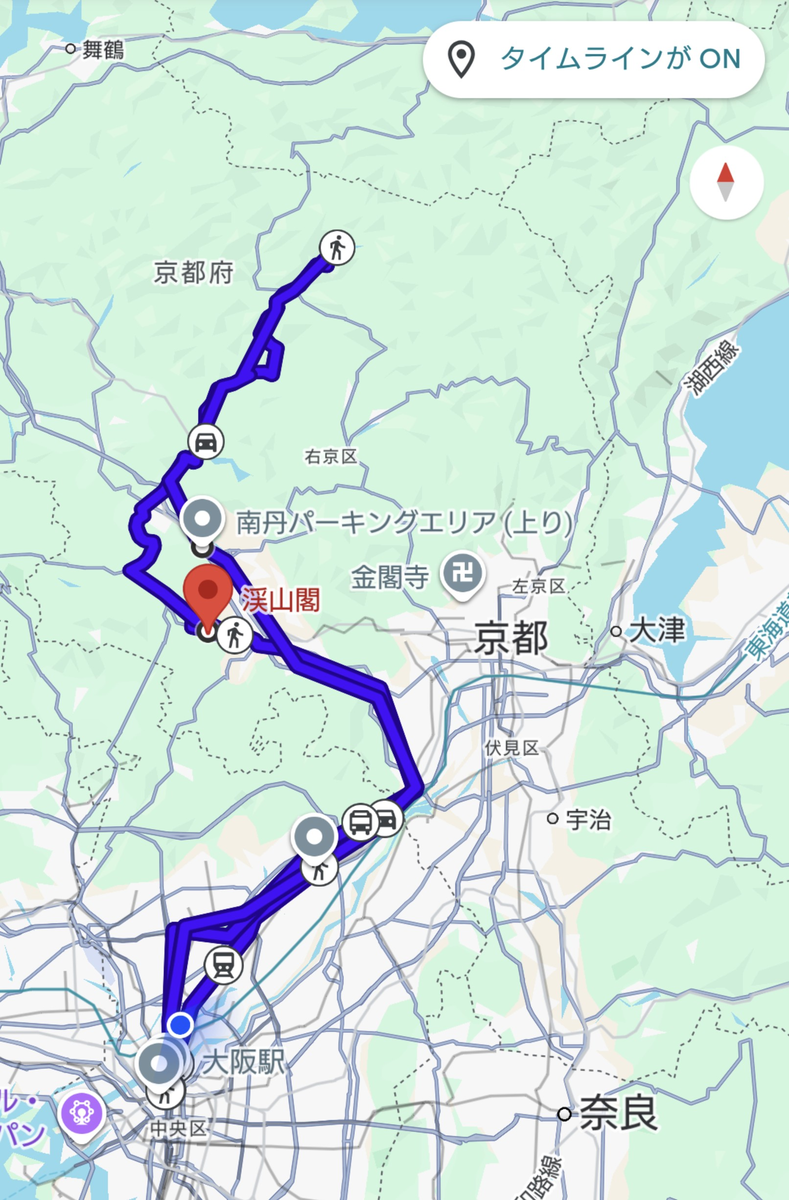 京都の上の方なんだけど、大阪梅田発だからちょっと時間がかかった気も。